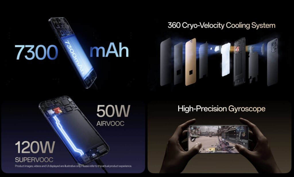 Battery & ChargingOne of the biggest massive battery.7,300mAh battery – Easily lasts more than a full day120W SuperVOOC fast charging50W wireless charging and reverse wireless charging.